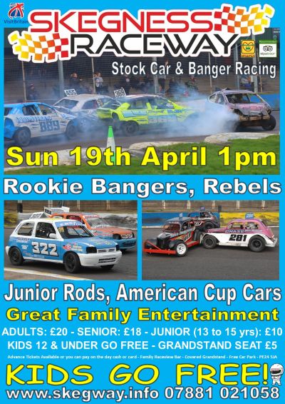 This is the Official and Only website for Skegness Raceway. If your viewing this page on a mobile device, please click on the Menu (3 black bars) in the top left corner to reveal all the pages. Including Full 2026 Event Guide (This page only shows the next 4 events, event times- opening, approx end etc are listed in the previews), Advance Tickets, Accessibility, Drivers info (inc booking, rules, Track hire etc) plus lots more! News item are under the previews. Skegness Raceway (Stadium) is a fun place to be for all members of the family, we offer great value for money and KIDS 12 & UNDER GO FREE! Skegness Raceway is also the home of the famous 'SKEG VEGAS' sign and our very own Monster Truck BIG THUNDER Advance Tickets are available or you can simply pay on the day cash or card. We have a large capacity we won't sell out! Only 5 mins from Ingoldmells, 10 mins from Chapel & Butlins and 15 mins from Skegness and easy to get to from surrounding areas, just follow the Brown Tourist signs. Sorry there isn't a bus service that goes to the raceway. Featuring a ¼ mile tarmac Oval race track, its unique wide bends and short straights offer the Best Banger and Stock Car racing in the country. Monster Truck Car Crushing, Car and Motorbike Stunts plus our famous Caravan Bangers. Family Raceview Bar, Food Outlets, Merchandise, 2 Large Covered Grandstands (New in 2024 seated covered grandstand on the home straight, small extra charge) & Large Car Park.
